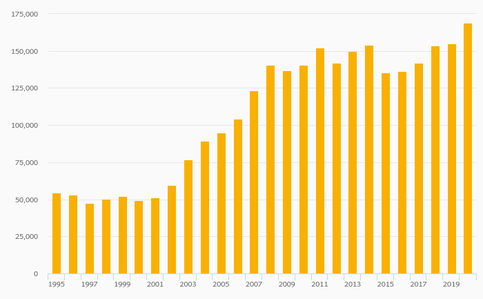 Households' Non-Financial Assets Per Capita (USD) rose 9.07% to USD 169,054 in Belgium in 2020