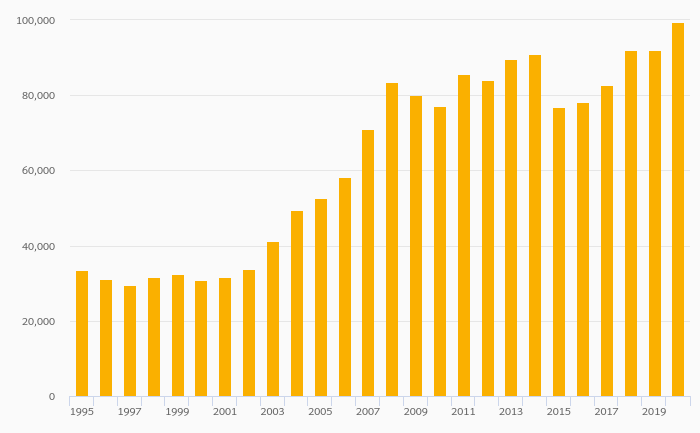 Households' Non-Financial Assets Per Capita (USD) rose 7.88% to USD 99,356 in Finland in 2020