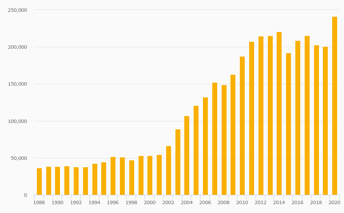 Households' Non-Financial Assets Per Capita (USD) rose 20.2% to USD 241,682 in Australia in 2020