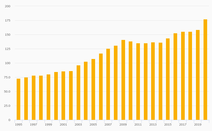 Households' Non-Financial Assets (As % of GDP) rose 11.6% to 177% in Sweden in 2020