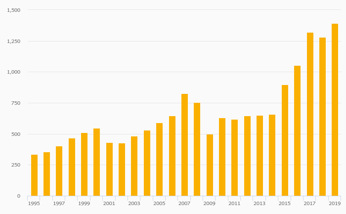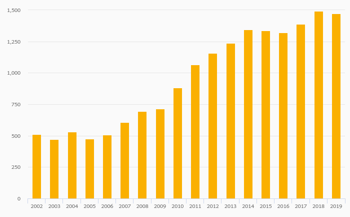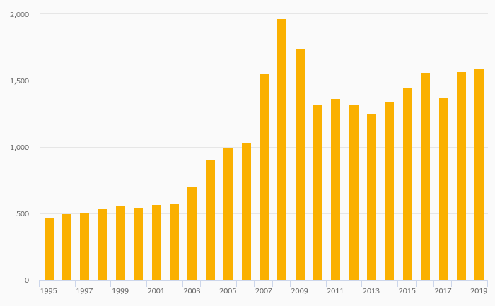 International Tourism, Expenditure (USD) rose 1.72% to USD 1,596 mil in Cyprus in 2019