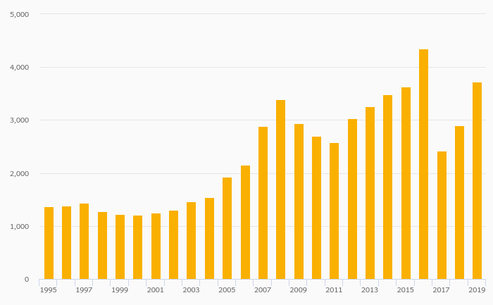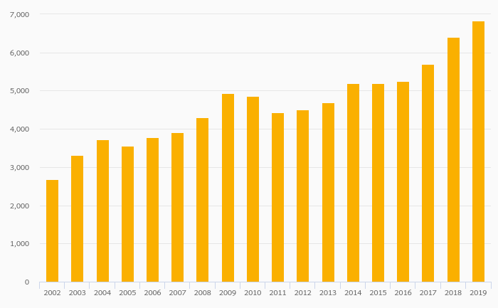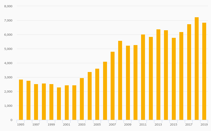 International Tourism, Expenditure (USD) fell 5.29% to USD 6,861 mil in Finland in 2019