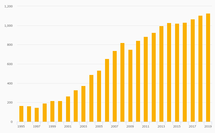 International Tourism, Expenditure (USD) rose 13.2% to USD 1,083 mil in Dominican Republic in 2019