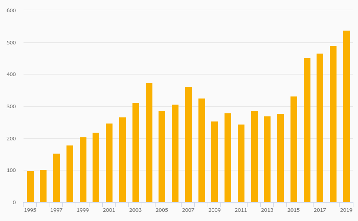 International Tourism, Expenditure (USD) rose 9.59% to USD 537 mil in El Salvador in 2019