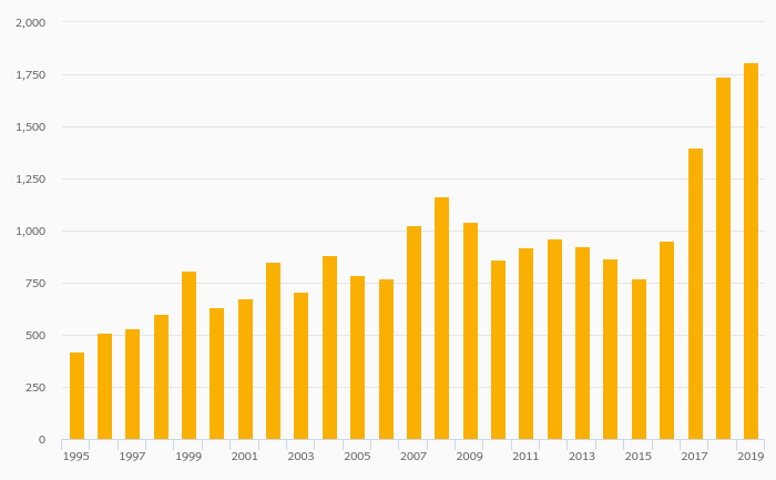 International Tourism, Expenditure (USD) rose 10.0% to USD 1,818 mil in Estonia in 2019