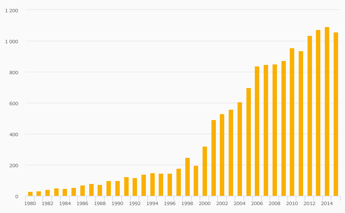 Dry Natural Gas Production fell 3.13% to 1,057 bil cb ft in Oman in 2015