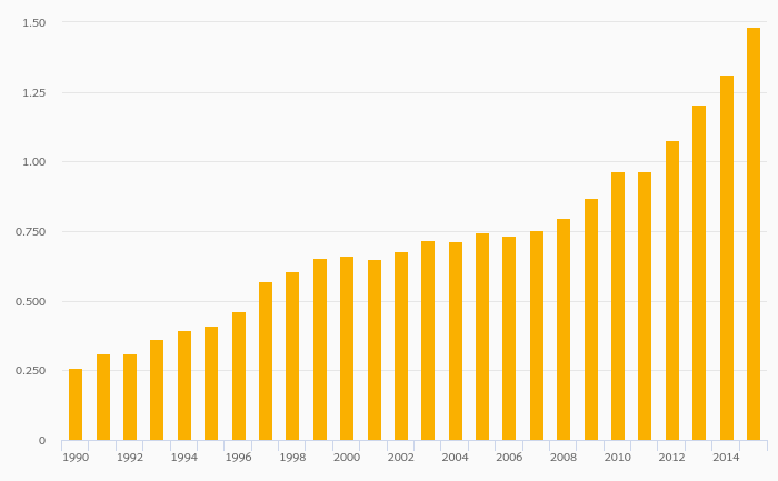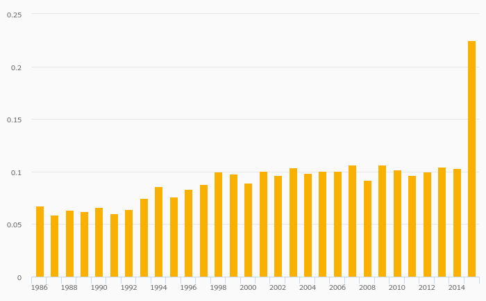 Gross Natural Gas Production (As % of Worldwide Production) rose 13.1% to 1.48% in Thailand in 2015