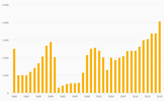 Crude Oil Supply rose 20.3% to 4,066 '000 bpd in Iraq in 2016