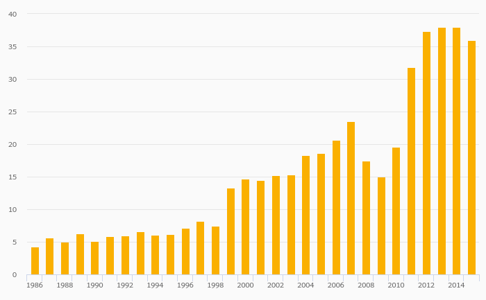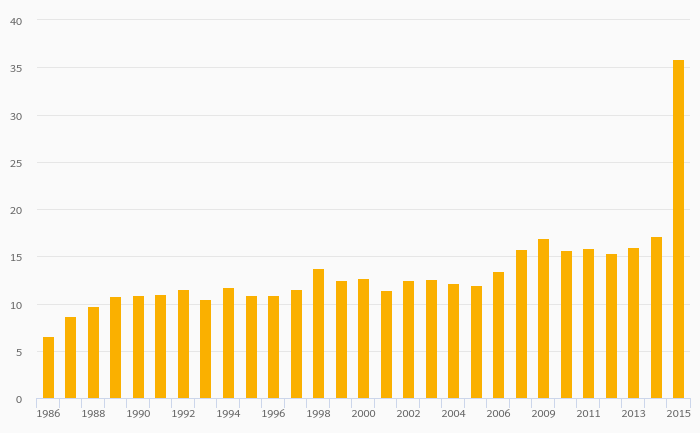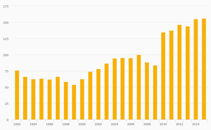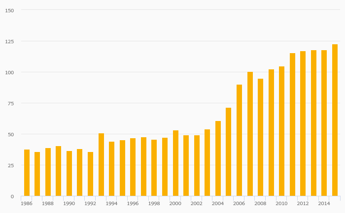 Jet Fuel Consumption rose 4.03% to 123 '000 bpd in India in 2015