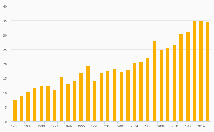 Kerosene Consumption (As % of Worldwide Consumption) rose 110% to 35.9% in India in 2015