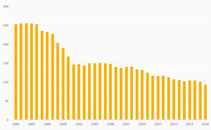Total Oil Supply fell 6.76% to 93.1 '000 bpd in Romania in 2016