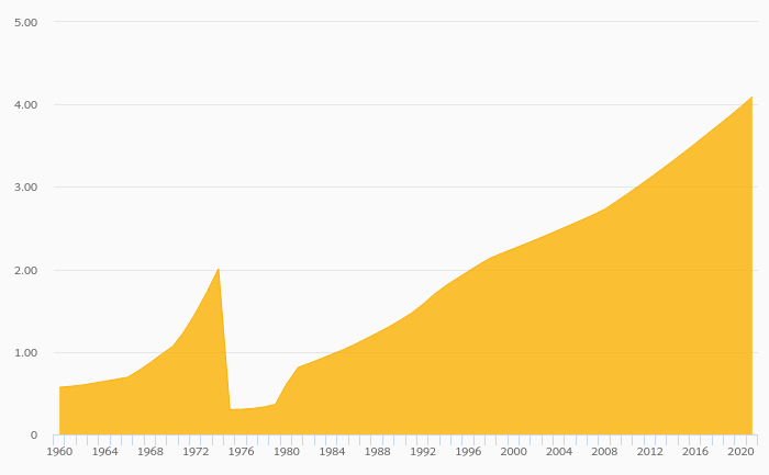 Population Growth Rate rose 275% to 0.886% in Oman in 2022
