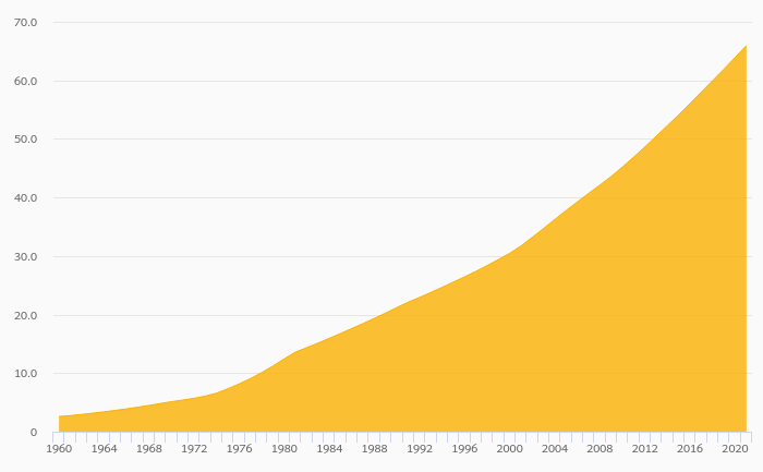 Urban Population rose 3.19% to 66.0 mil in Bangladesh in 2021