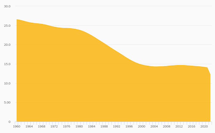 Population Aged 0-14 Years (As % of Total Population) fell 13.6% to 12.1% in Greece in 2022