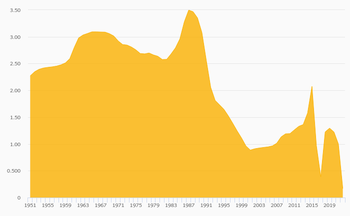 Population Growth Rate fell 83.1% to 0.169% in South Africa in 2022