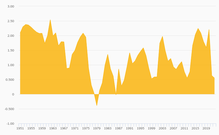 Population Growth Rate fell 13.1% to 0.552% in New Zealand in 2022