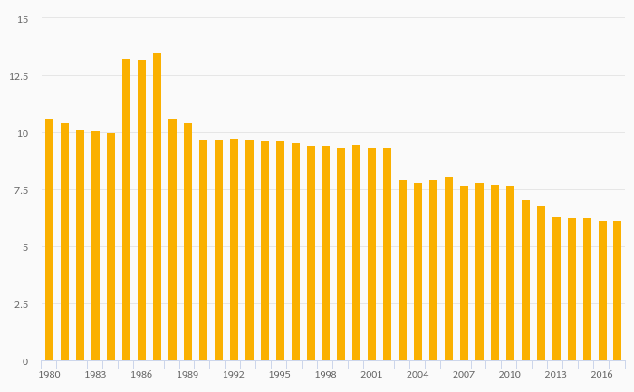Crude Oil Reserves (As % of Worldwide Reserves) rose 0% to 6.15% in Kuwait in 2017