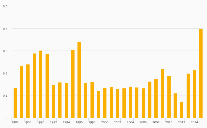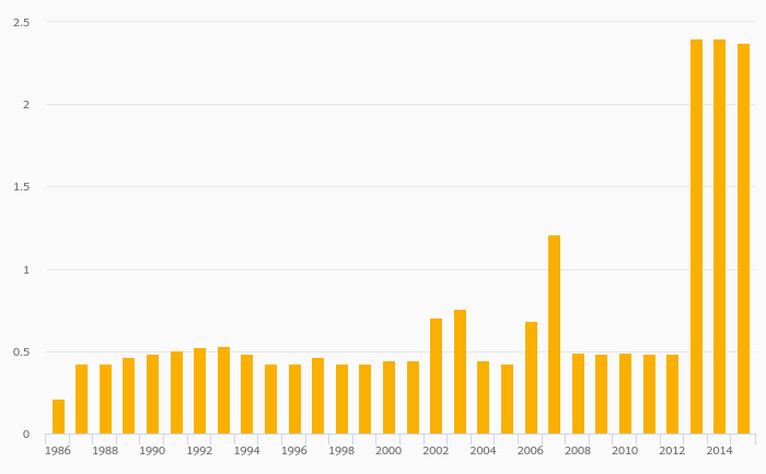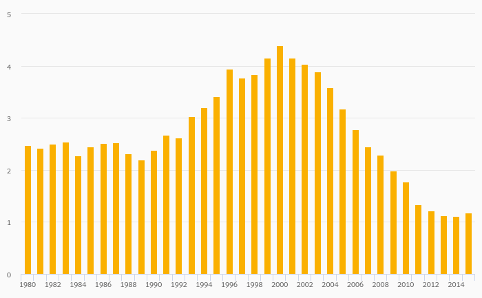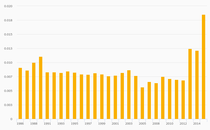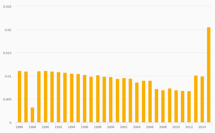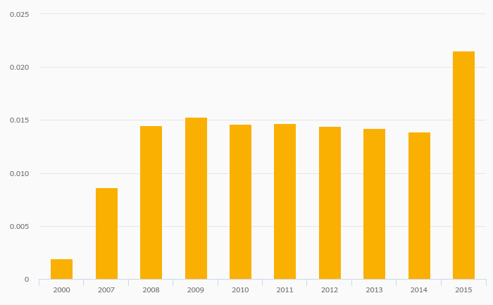 Dry Natural Gas Production (As % of Worldwide Production) rose 5.63% to 1.18% in the United Kingdom in 2015