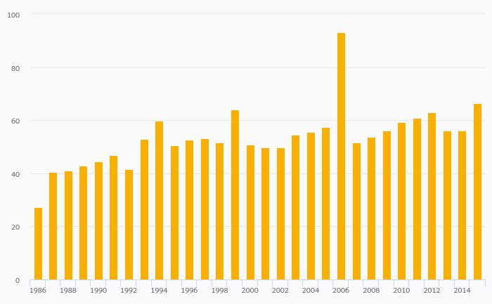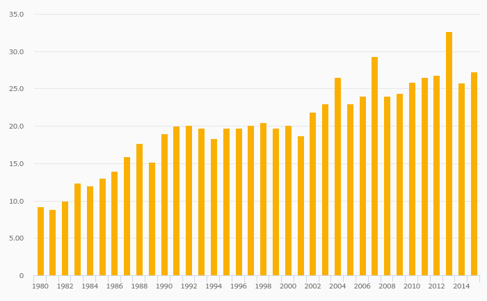 Jet Fuel Consumption rose 18.3% to 66.5 '000 bpd in Saudi Arabia in 2015