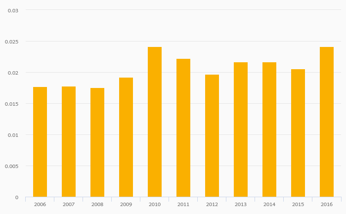 Crude Oil Supply (As % of Worldwide Supply) rose 17.5% to 0.024% in Serbia in 2016