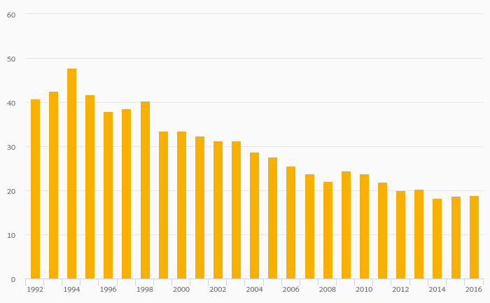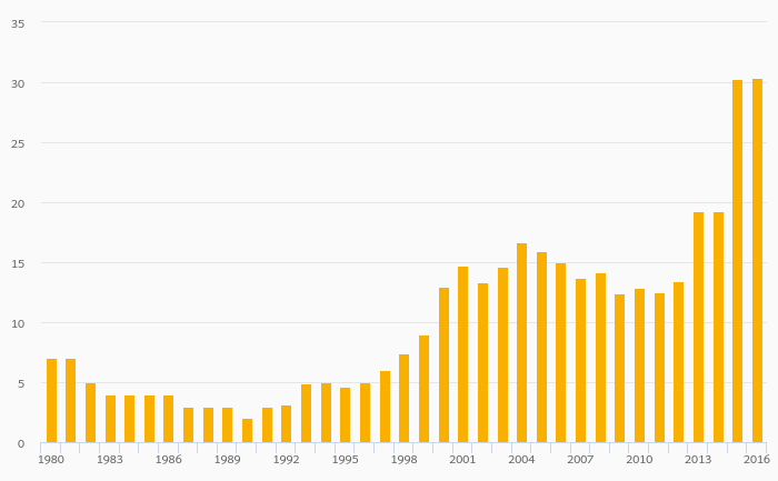 Crude Oil Supply rose 0.525% to 30.4 '000 bpd in Poland in 2016