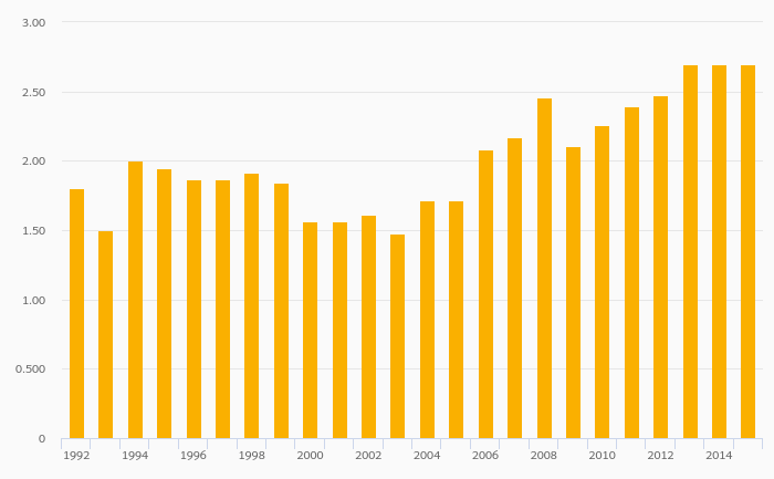Jet Fuel Consumption fell 0.221% to 2.69 '000 bpd in Croatia in 2015