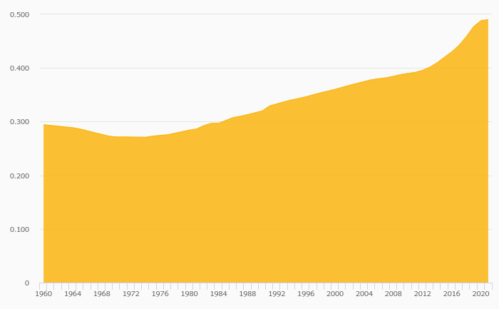 Urban Population rose 2.73% to 0.335 mil in Bhutan in 2021