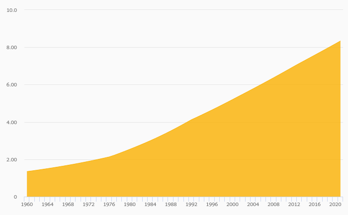 Urban Population rose 1.88% to 8.34 mil in Bolivia in 2021
