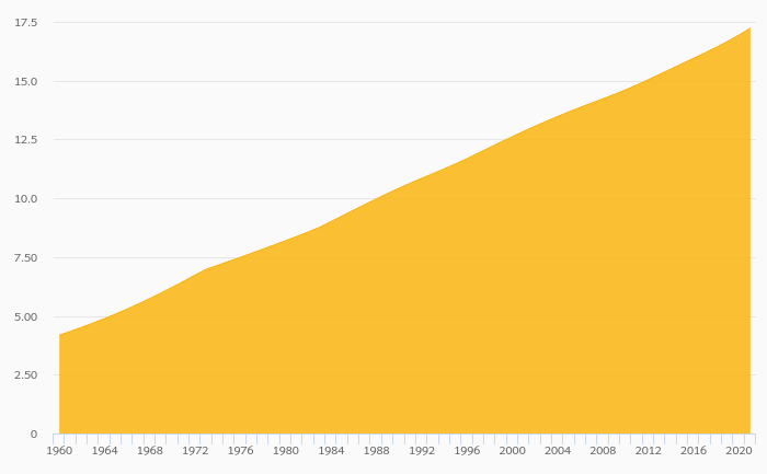 Urban Population rose 1.72% to 17.2 mil in Myanmar in 2021