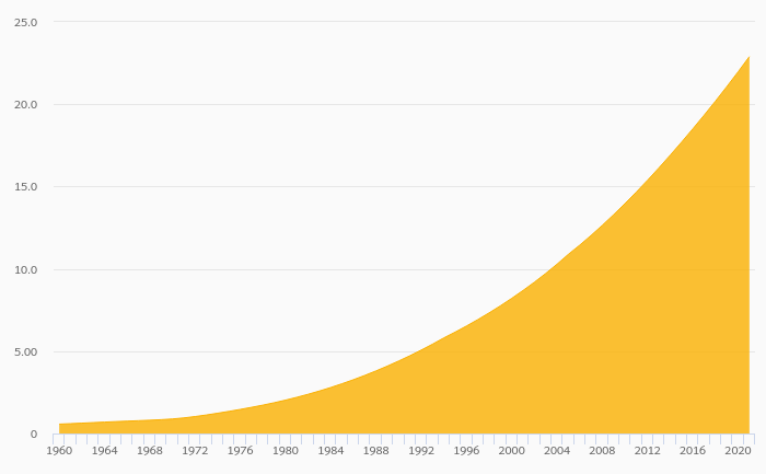 Urban Population rose 4.23% to 22.9 mil in Angola in 2021