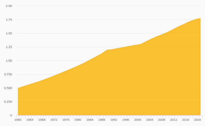Urban Population rose 2.92% to 1.72 mil in Botswana in 2021