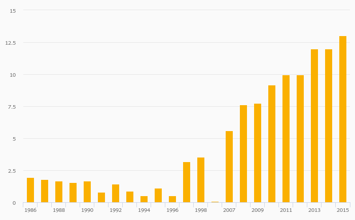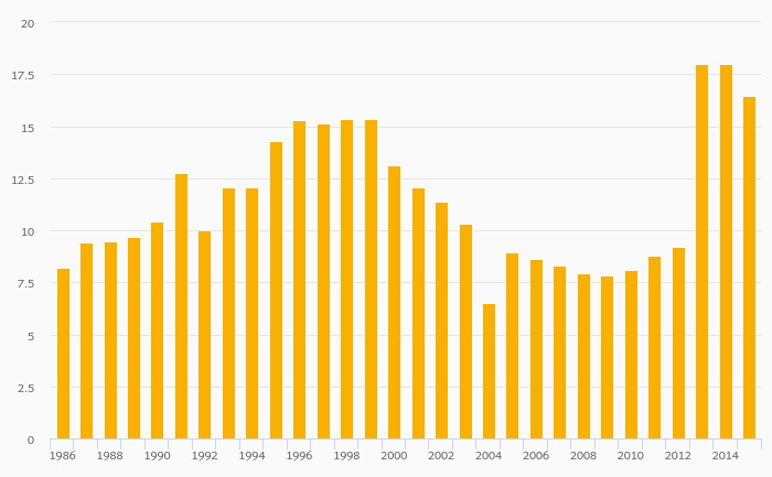 Jet Fuel Consumption rose 8.45% to 13.0 '000 bpd in Panama in 2015