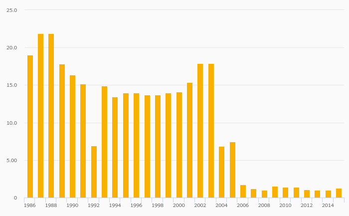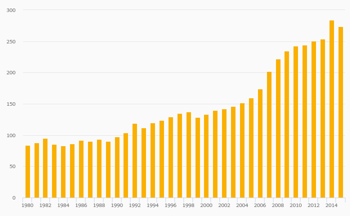 Total Petroleum Consumption fell 3.59% to 274 '000 bpd in Ecuador in 2015