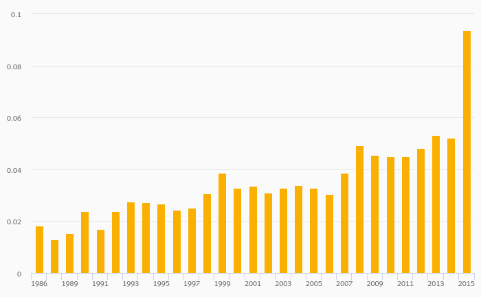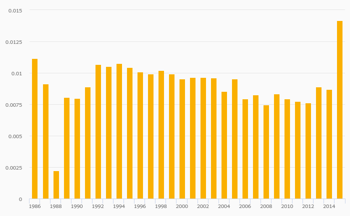 Jet Fuel Consumption (As % of Worldwide Consumption) rose 63.5% to 0.014% in Mali in 2015