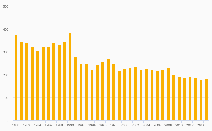 Total Petroleum Consumption rose 2.21% to 183 '000 bpd in Romania in 2015
