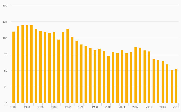 Total Oil Supply rose 3.11% to 52.2 '000 bpd in Tunisia in 2016
