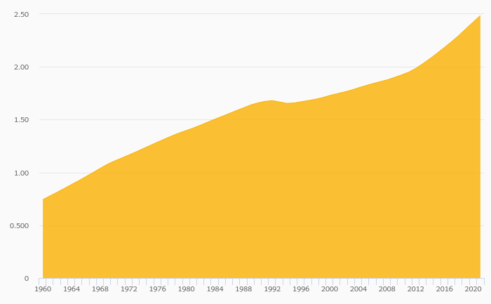 Urban Population rose 2.54% to 2.49 mil in Kyrgyzstan in 2021