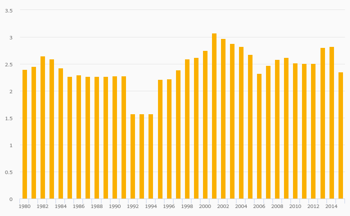 Proved Reserves of Crude Oil fell 16.5% to 2.35 bil barrels in Argentina in 2015