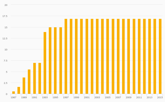 Proved Reserves of Natural Gas rose 0% to 16.9 trillion cb ft in Yemen in 2015