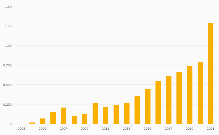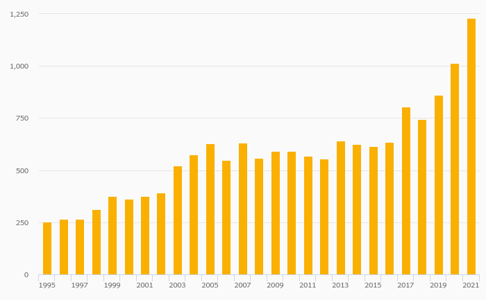 Households' Assets In Investment Funds (USD) rose 21.4% to USD 1,230 bil in Germany in 2021