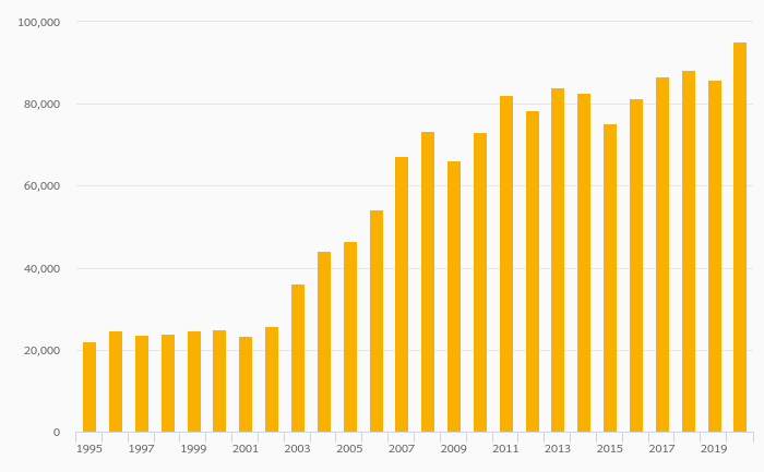 Households' Non-Financial Assets Per Capita (USD) rose 10.7% to USD 95,148 in Sweden in 2020
