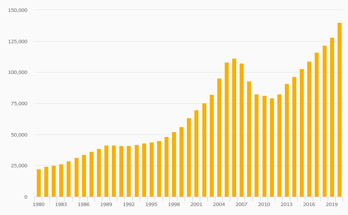 Households' Non-Financial Assets Per Capita (USD) rose 9.38% to USD 139,897 in the USA in 2020