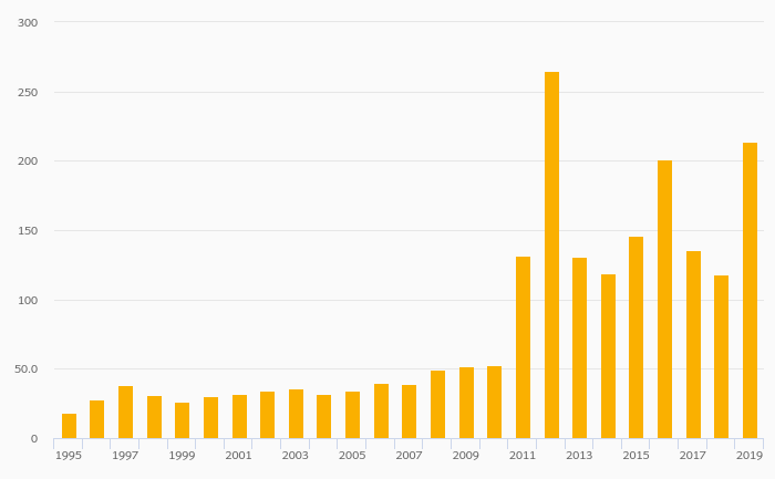 International Tourism, Expenditure (USD) rose 81.4% to USD 214 mil in Myanmar in 2019