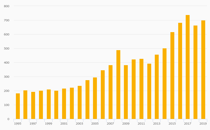 International Tourism, Expenditure (USD) fell 5.91% to USD 717 mil in Angola in 2019