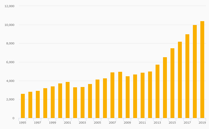 International Tourism, Expenditure (USD) rose 4.15% to USD 10,389 mil in Israel in 2019