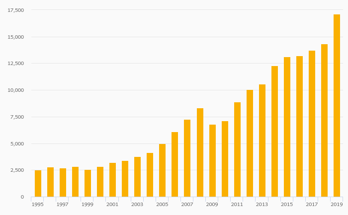International Tourism, Expenditure (USD) rose 19.6% to USD 17,131 mil in Kuwait in 2019