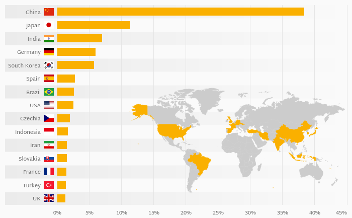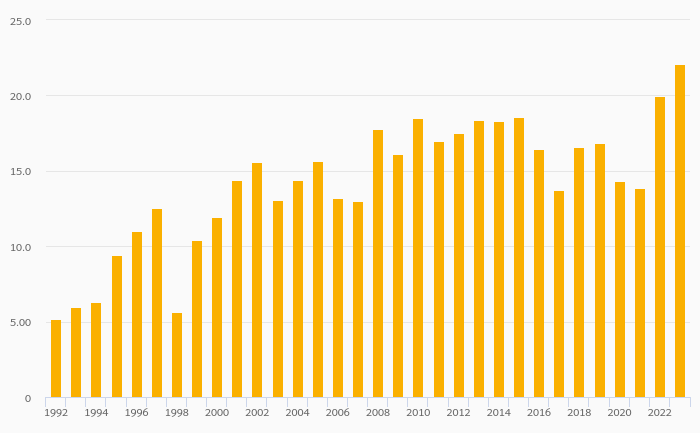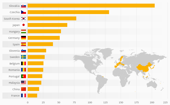 Production of Cars Per 1,000 People rose 10.6% to 22.1 vehicles in Malaysia in 2023