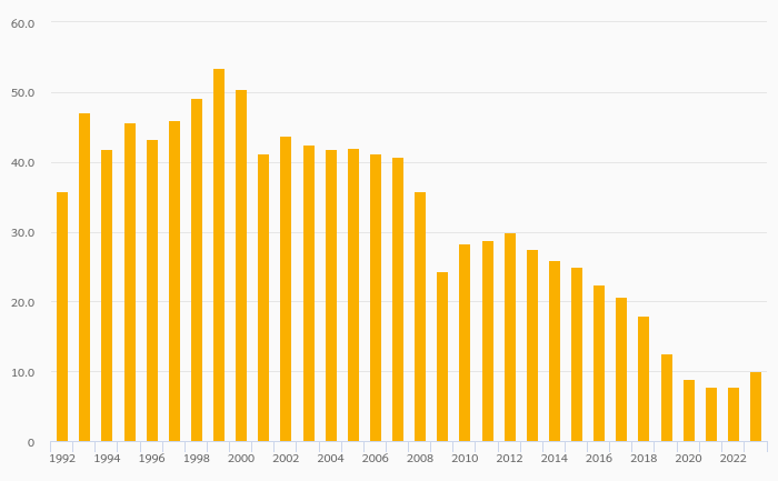 Production of Cars Per 1,000 People rose 29.5% to 10.1 vehicles in Canada in 2023