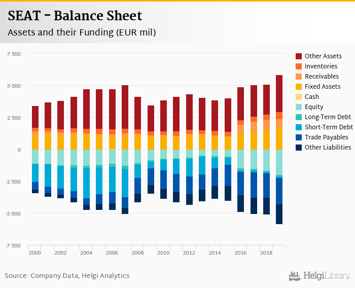 SEAT's total assets reached EUR 5,843 mil at the end of 2019, up 15.4% compared to the previous year.