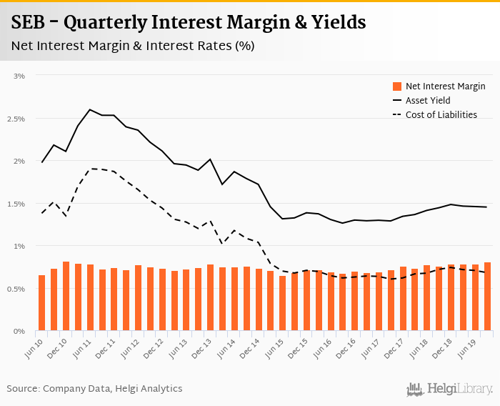 SEB's net interest margin amounted to 0.803% in the third quarter of 2019, up from 0.785% when compared to the previous quarter.